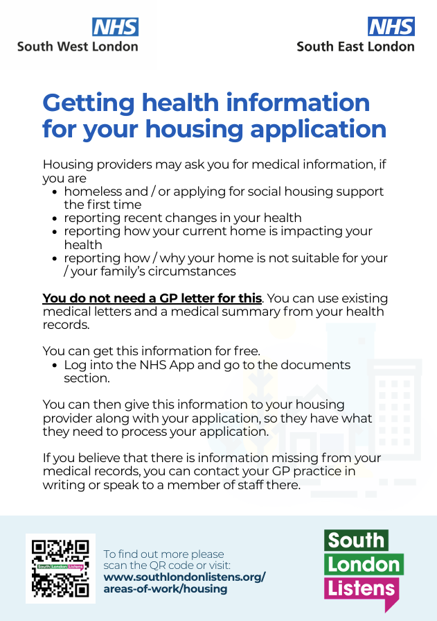 You can obtain this information at no cost by using existing medical letters and a medical summary from your health records by logging in to the NHS App and going to the ‘Documents’ section.